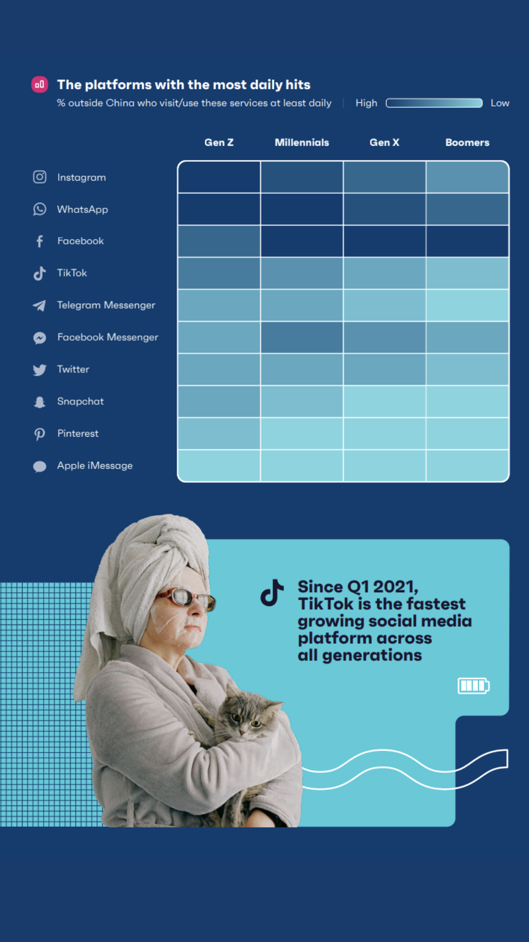 💠TikTok – the most daily hits for Gen Z followed by Millennials