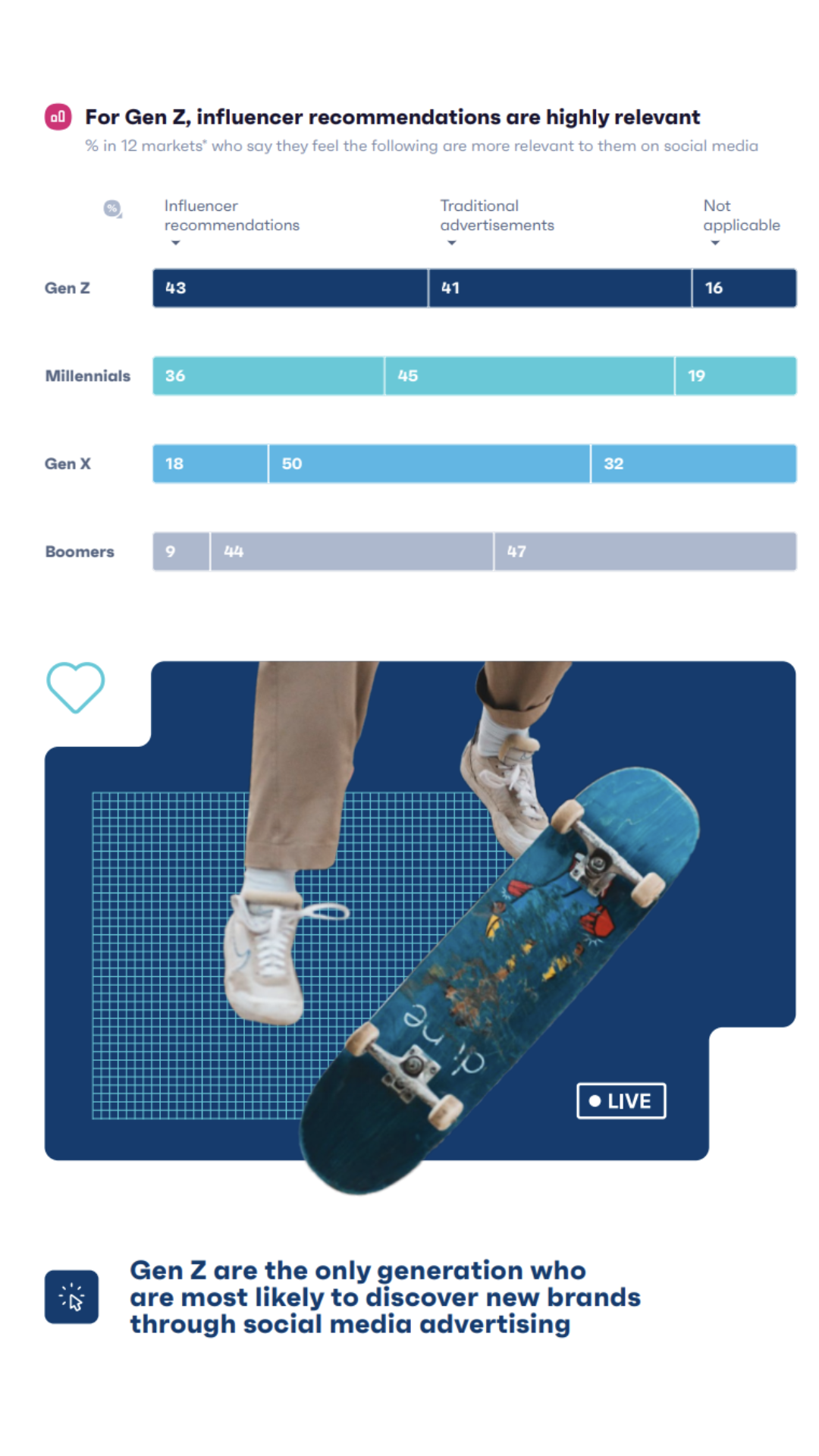 💠Gen Z are most likely to discover new brands through social media advertising